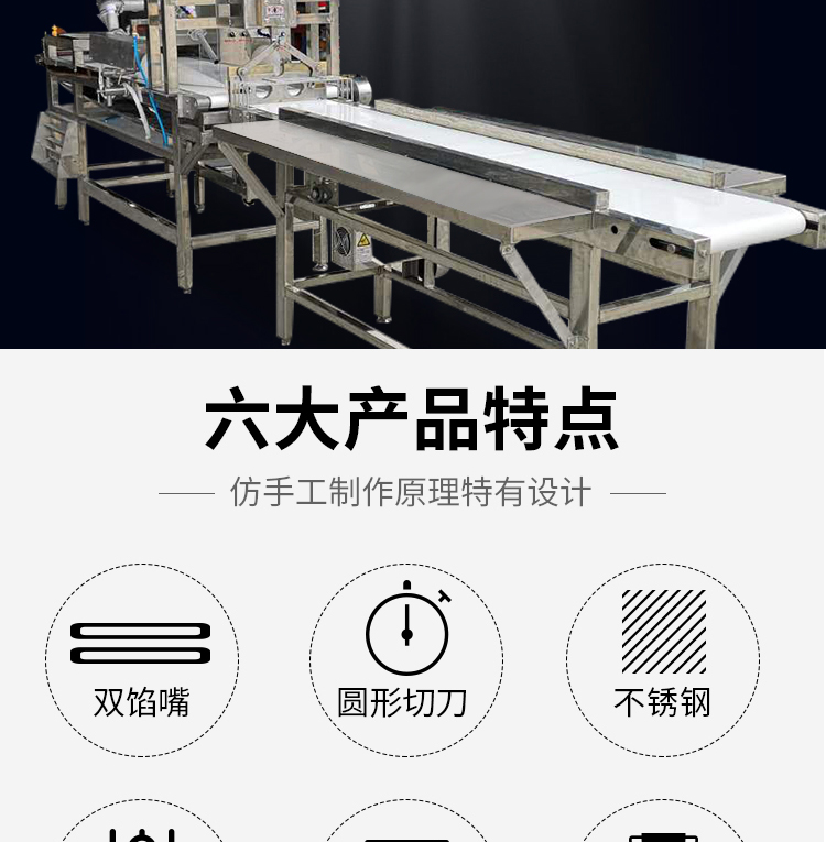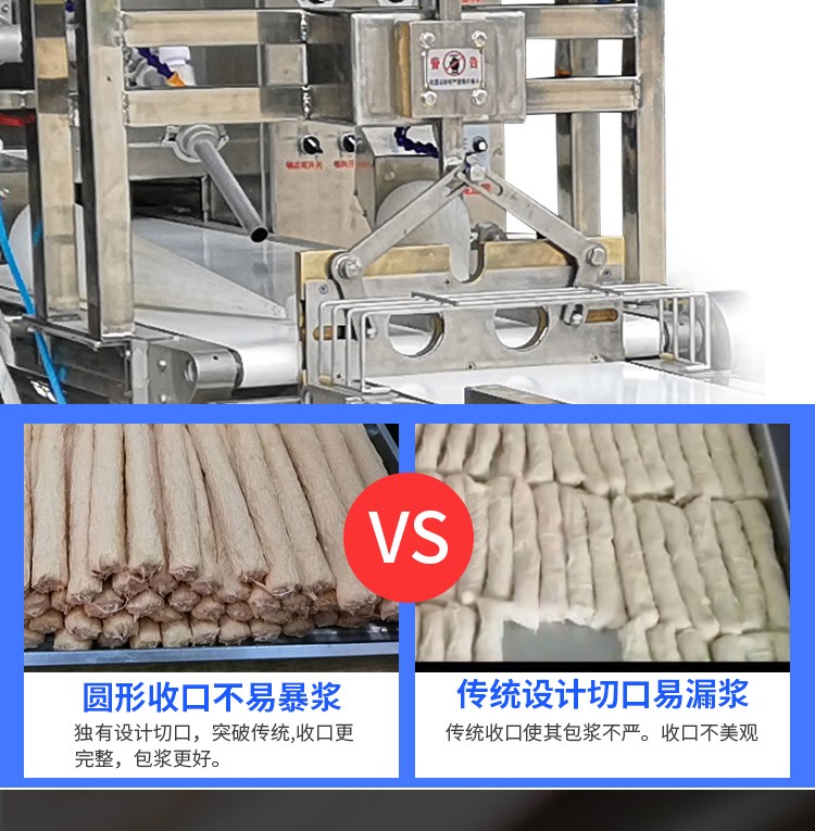 SZ-509腐皮卷機,六大產品特點仿手工制作原理特有設計:雙餡嘴、園形切刀、不銹鋼、可調控、大容量料斗、一機多用。餡嘴采用304不銹鋼食品材質,使用安全更耐用。滾輪式卷餡,餡料裹皮更均勻。