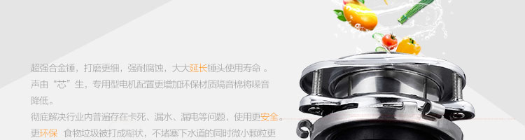 DCLQ56-廚房垃圾處理器,垃圾處理器能夠有效地將食物垃圾研磨成細小顆粒,直接從下水管道排出,從而輕松實現(xiàn)及時方便快捷的廚房清潔,避免食物囤積滋生病菌,蚊蟲和異味,有效優(yōu)化家居環(huán)境。