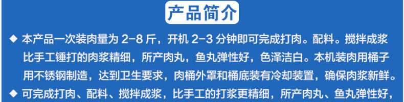 SZ-24型高速肉丸打漿機,高速肉丸打漿機選用不銹鋼,生產過程中改善了肉質脂肪纖維,生產出的丸子外表光滑細膩、低脂、口感爽脆、彈性好、韌性好,是潮州肉丸的專用打漿機。