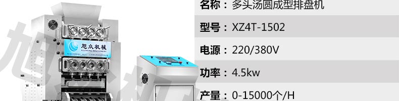 XZ4T-1501多功能搓圓擺盤機/湯圓機,本機只要將面團(tuán)放入進(jìn)料口,開機便可自動搓圓、成型的設(shè)備,一次性成型四次產(chǎn)品,制品不易變形,工作效率高,相當(dāng)于15-20個工人同時手工制作湯圓,并可自動排盤,真正的低投入、高收效、省錢省工。